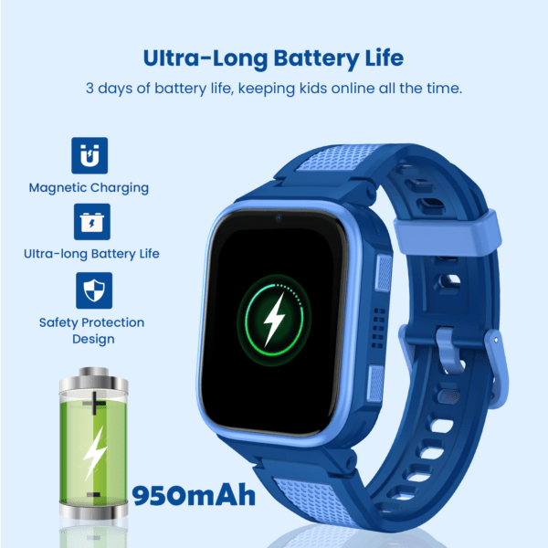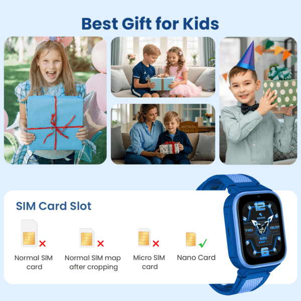 Ceas Smartwatch Pentru Copii LAGENIO K10, Model Premium 4G cu Functie Telefon & AI, Forma Slim, Localizare GPS, Control Parental, Buton SOS, Pasi, Alarma, Albastru